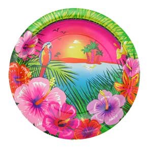 Spice up the Luau Party with Festive Tableware! Since no luau party is complete until everything is Hawaiian, don't forget the tableware! Made of paper. 9" long and wide. Tropical waterfall, hibiscus flowers and parrot print. Sold in package of 8 pieces. A must have Hawaiian accessory for tropical theme events like Hawaiian Luaus, corporate parties, weddings, and more. Part of Tableware > Plates